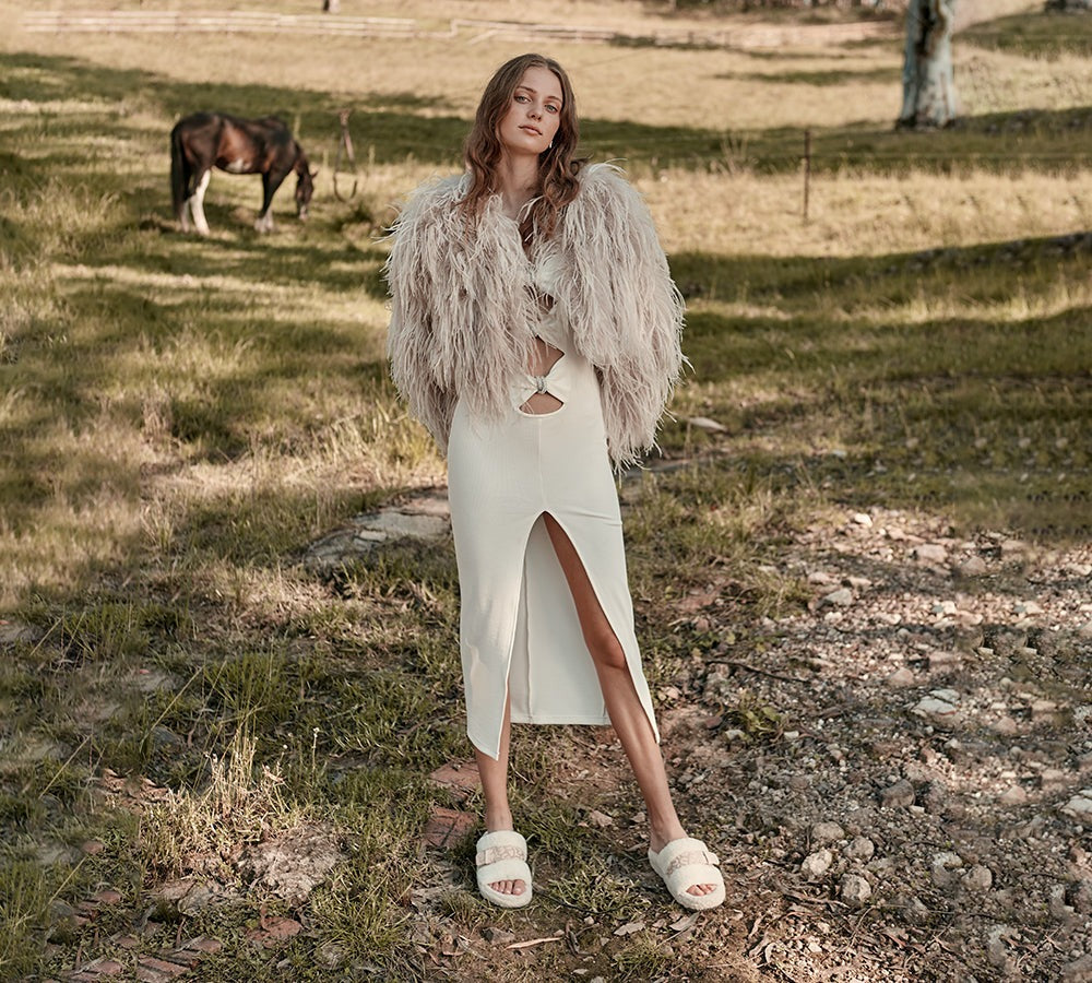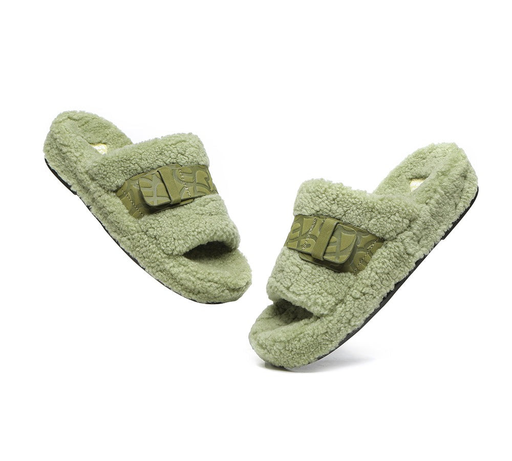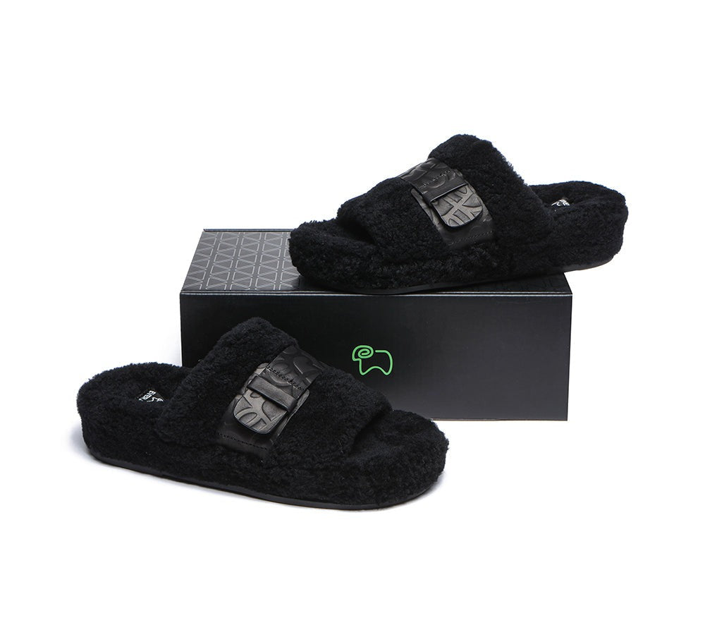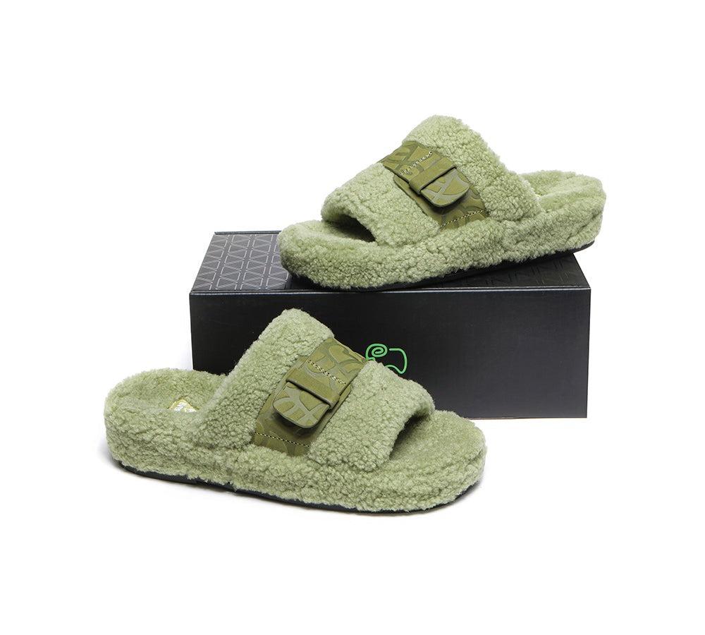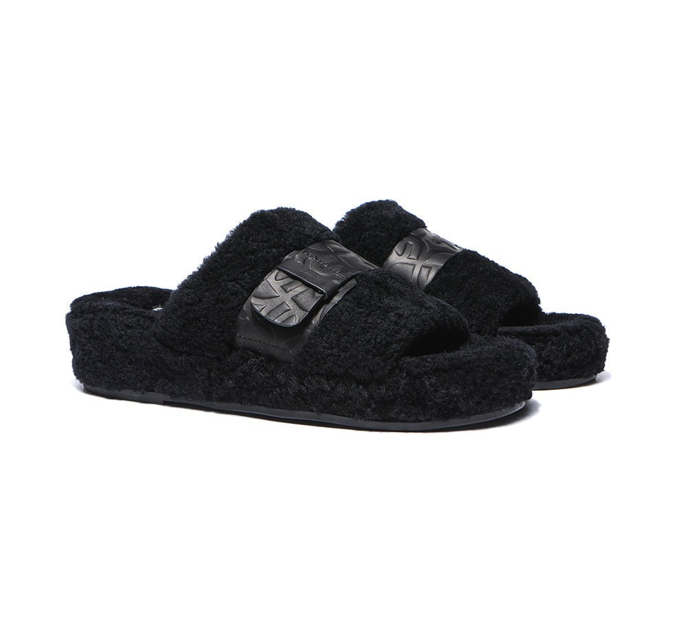 A slightly different sheepskin slippers, the Croft Slides are designed with curly sheepskin that is extra soft and breathable. The wave patterns material and embroidery on the strap make it a great style to wear with jeans or a summer dress.
