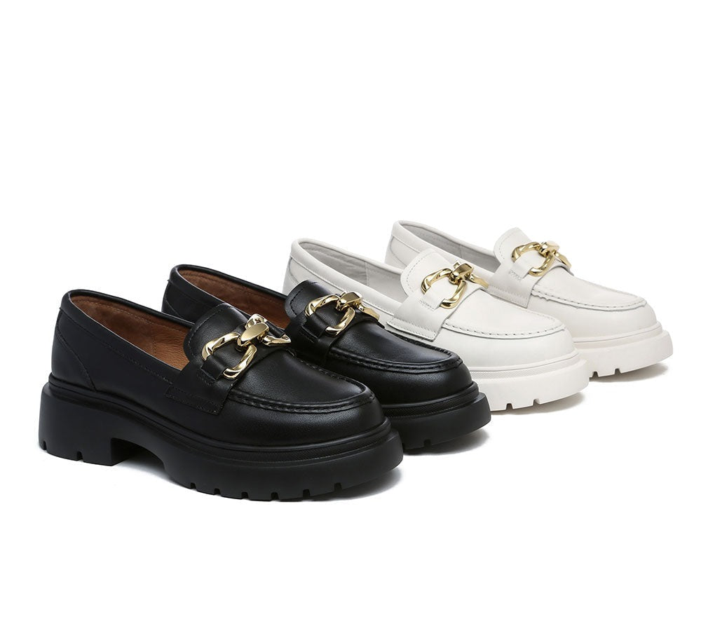 Step into comfort and style with the EVERAU Della Platform Loafers. Crafted from premium cow leather, these shoes offer a touch of femininity in a simple yet well-made design. With a roomy round-toe shape and breathable leather lining, your feet will stay comfy and dry. Versatile in its options of solid colours with metal decor, these flats are suitable for any occasion, making them perfect for all seasons.